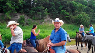 We ate lunch at the trailer after taking Red's saddle off. He was sweating some - enough that he was comfortable. His neck under his mane was WET - not damp WET. Under his legs was sweaty wet...not damp, WET. I was thrilled. There was sweat under his saddle. OMG Thank you Jesus!!! It was HOT on the rocks even in the shade of the trailer. We ate with Denise, Kenny, Kent, Kellie and Randy. OMG we had a good time. Kellie said that was enough for her and I knew that it was just going to get hotter and didn't want to push Red too much and I was exhausted. I want to spend all day out there when it is cooler. Kellie and I are going to look for a place to camp over so we can ride two days in that park. It is gorgeous and just so darn nice!!! Loved it.